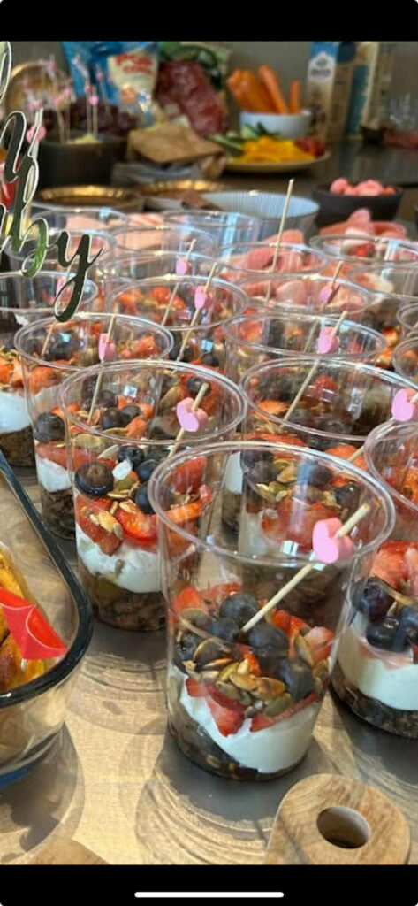 Brunch glas med Græsk yoghurt med og Jule-granola pyntet med friske bær.