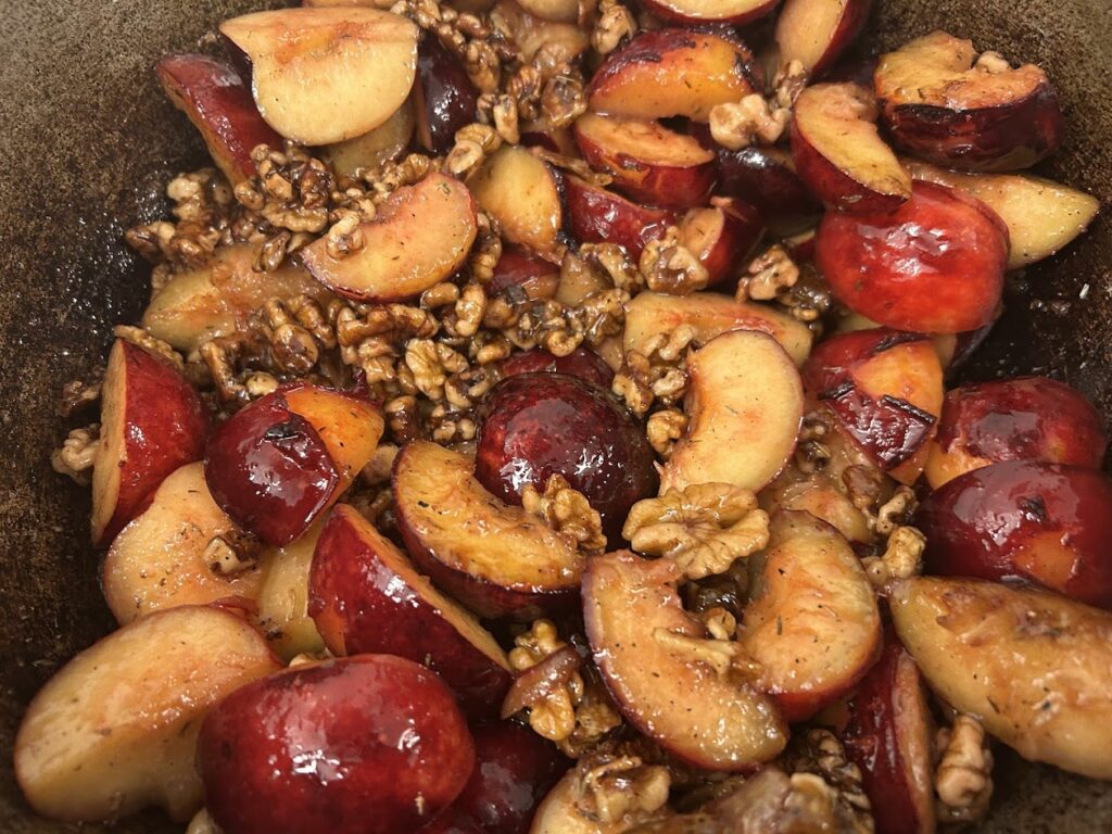 Ostefad 3 slags oste pyntet med peberfrugt bagt blommekompot med valnød. . ( vi aftaler ost.)
